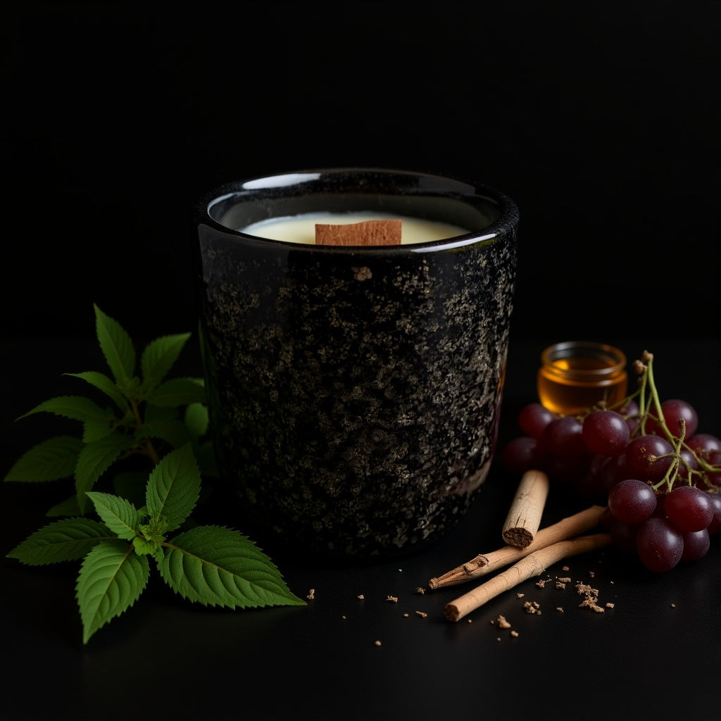 In the golden light of the Tuscan hills, dusk settles over vineyards and olive groves. The air hums with the scent of ripened fruit, wild herbs, and woodsmoke rising from distant fires. Dusk of Etruria captures that fleeting hour when day turns to ritual — when the harvest is gathered and gratitude fills the air. Inspired by the ancient Etruscans, who burned offerings of fruit, grain, and wine to honor the gods, this candle celebrates the union of earth and flame. Fig leaf, basil, and thyme open the fragrance with fresh vitality, softening into notes of grape, honey, and tobacco. Beneath it all lies warm cedar, leather, and amber resin — a foundation of quiet reverence. It is both pastoral and sacred — a tribute to the land, to craft, and to the timeless rhythm of renewal. To light Dusk of Etruria is to breathe in the warmth of history, and let the evening settle around you like honeyed light. Fragrance Pyramid: Mood & Character: Details: